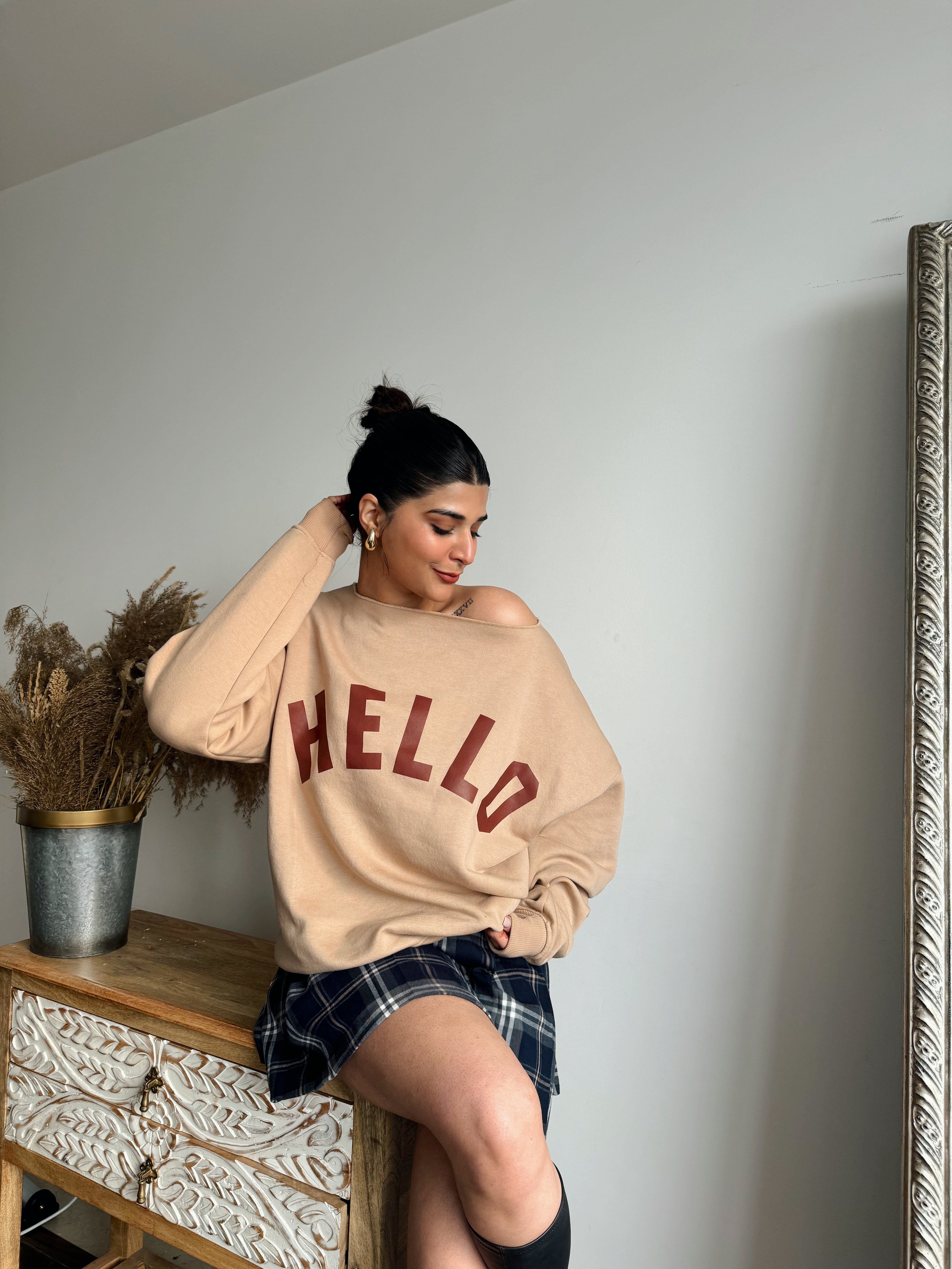 Hello Off Shoulder Sweatshirt