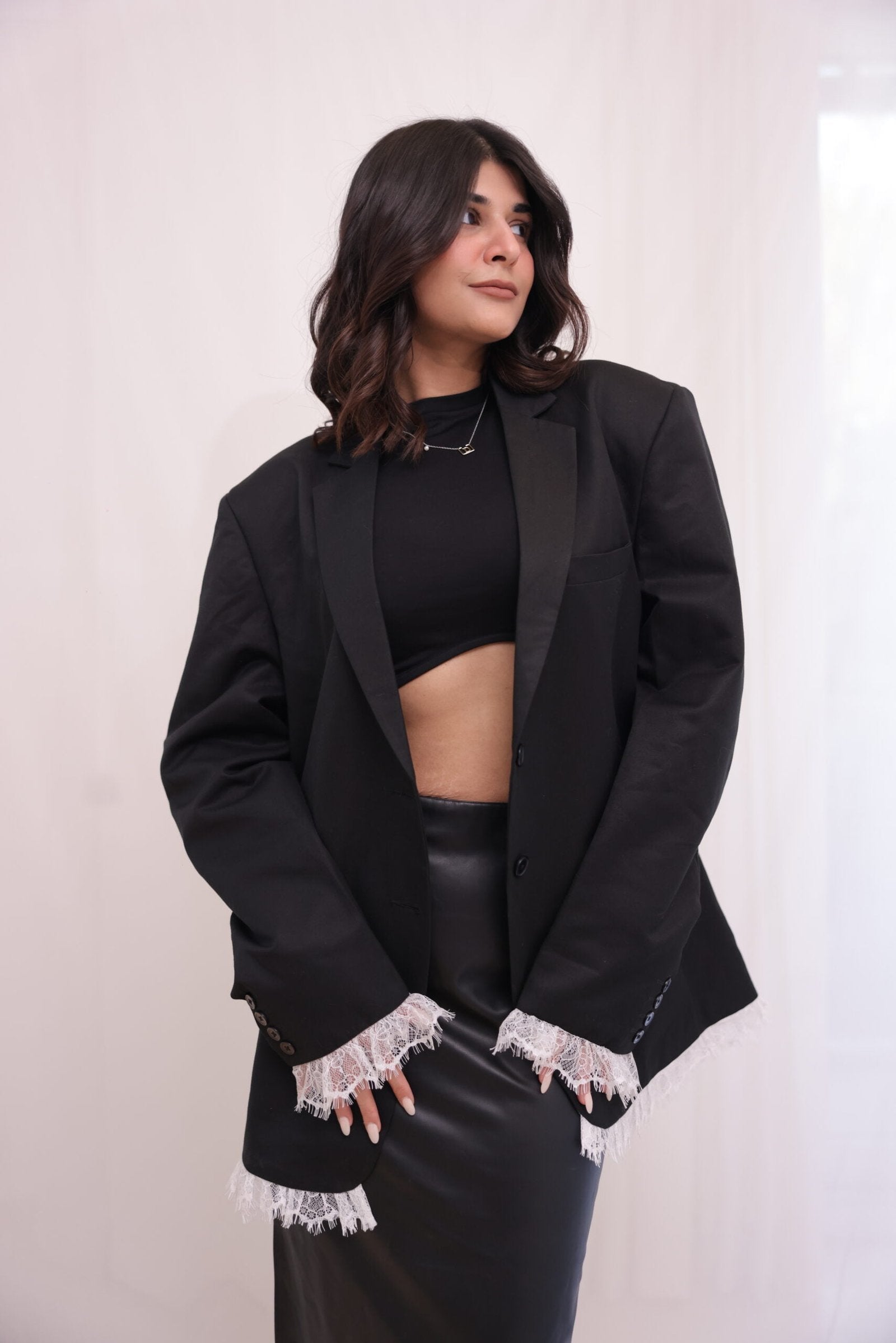 Lacy Black Oversized Blazer