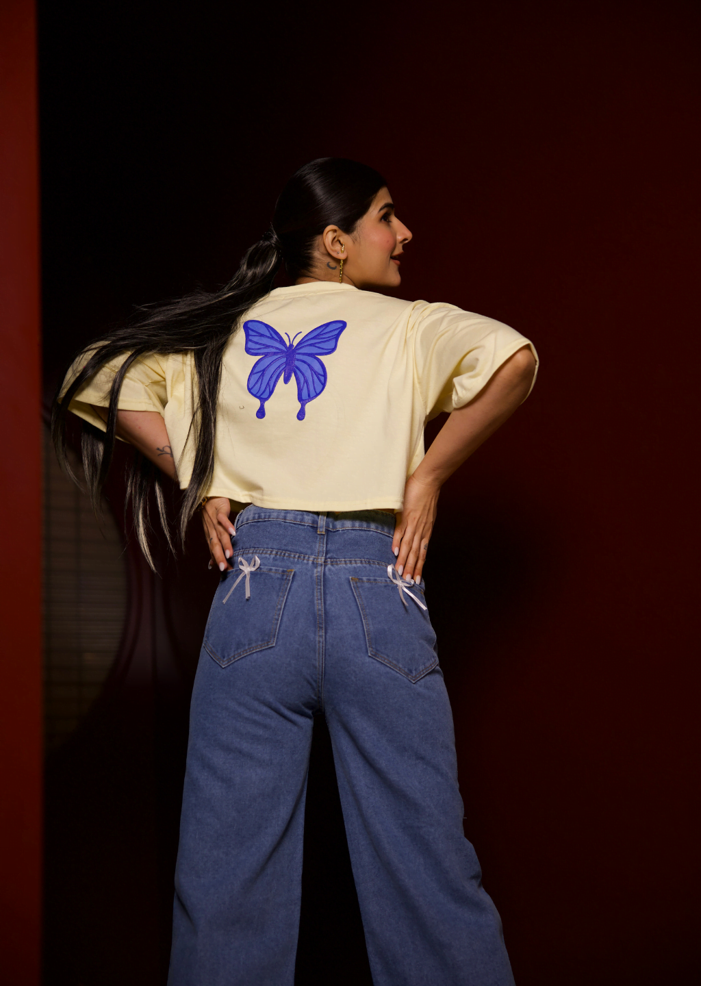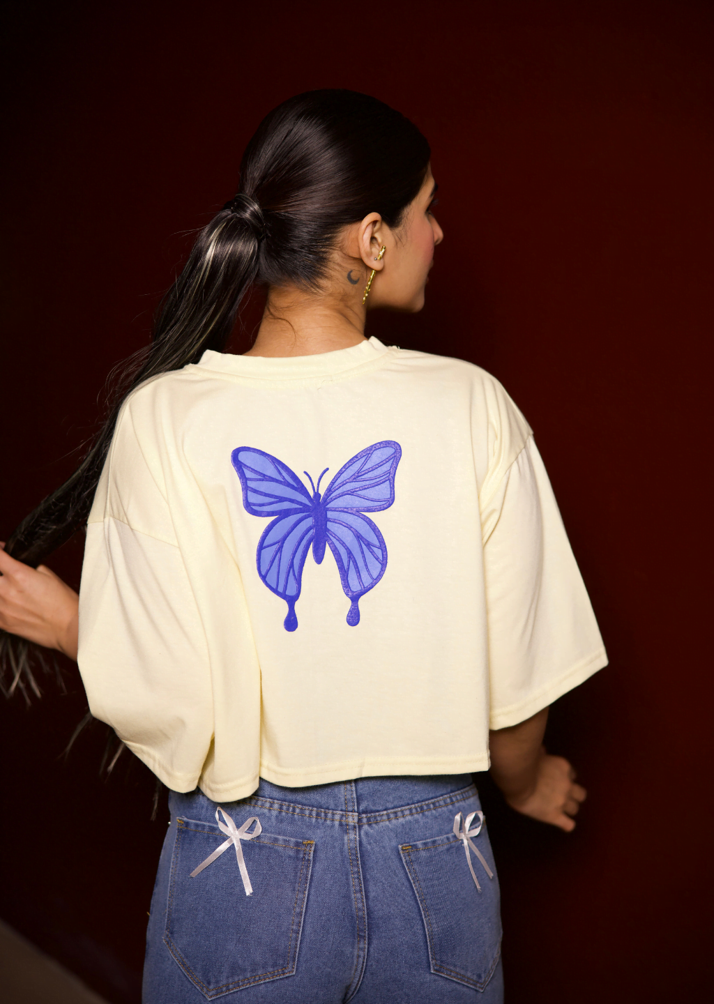 Light, cute, and effortlessly cool the Butterfly Crop Tee is your warm-weather essential. The bold butterfly graphic adds the perfect playful edge.