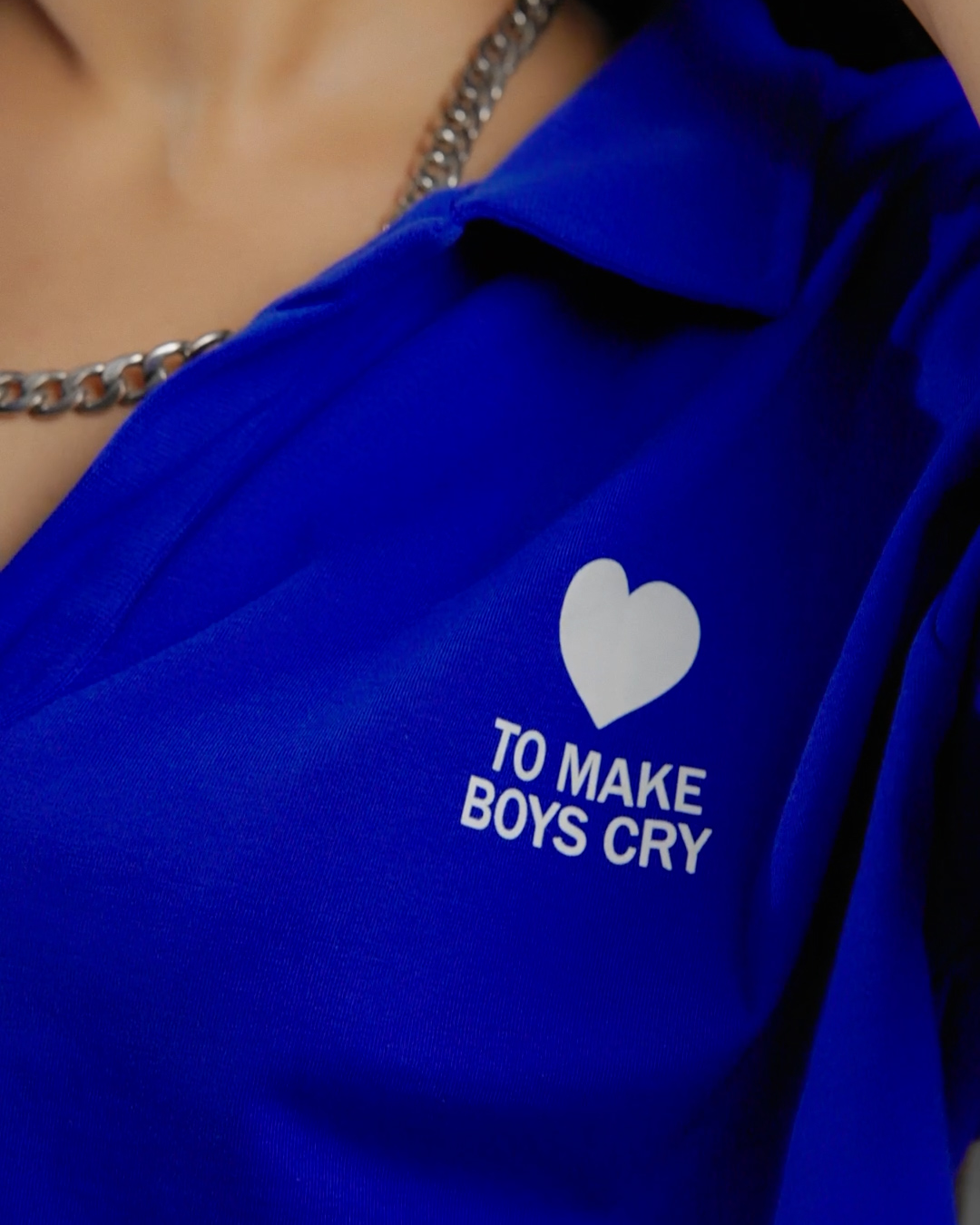 - Statement Graphic Print – “Love To Make Boys Cry” with a heart detail — playful, bold, and unapologetic.