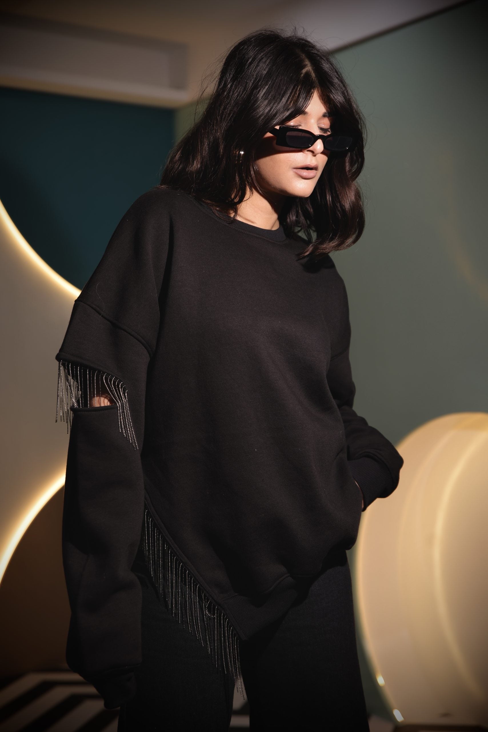 Own the night in the Midnight Sweatshirt bold, black, and beautifully comfy. A must-have piece that brings mood and mystery.