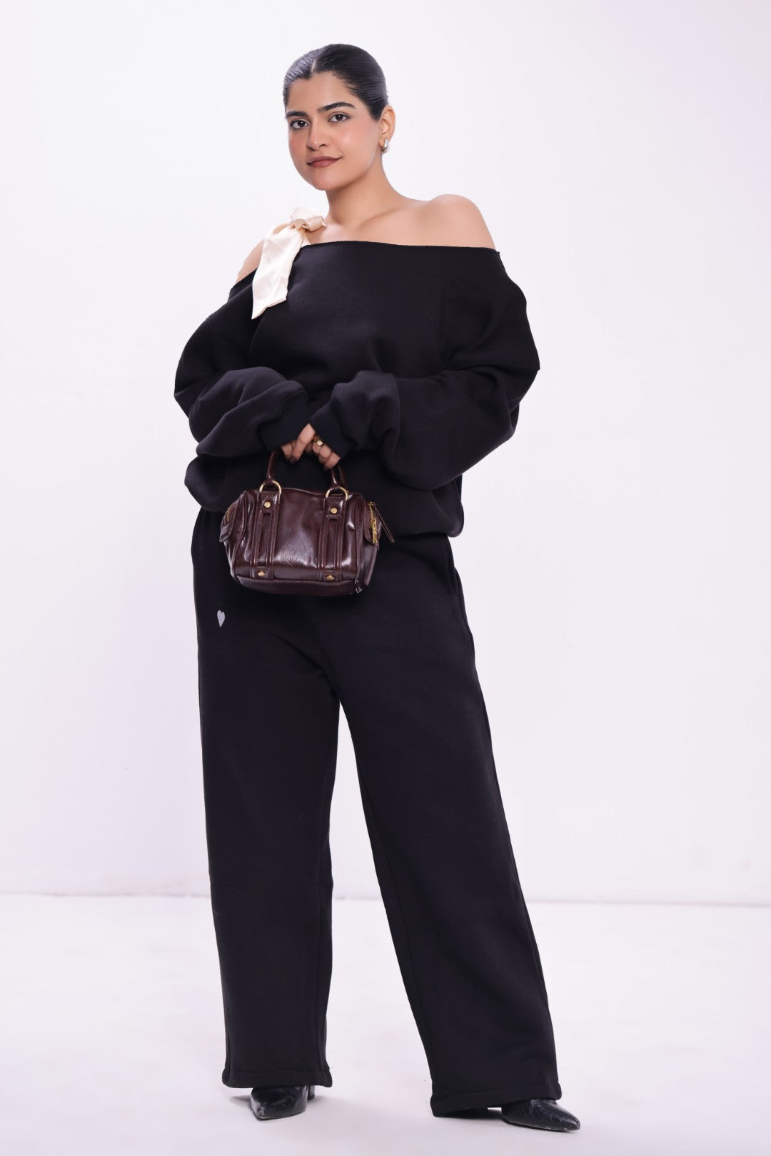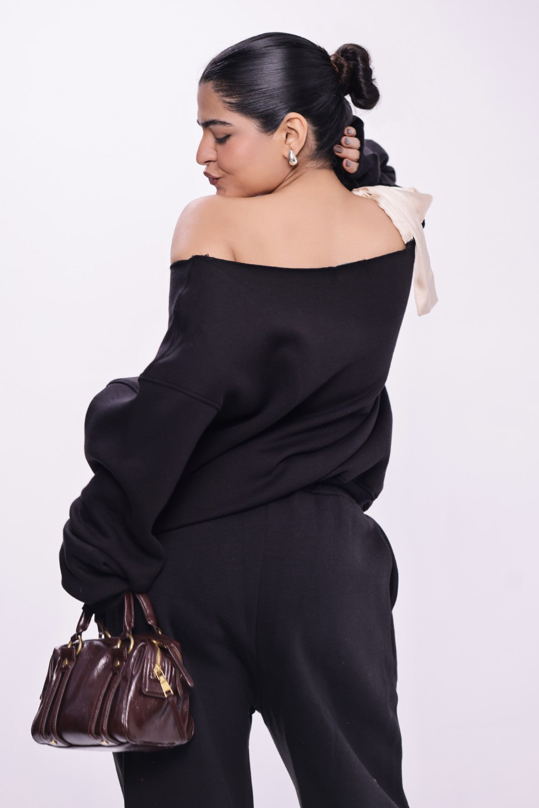 For days when comfort meets subtle statement. The Satin Tie-Up Sweatshirt – Black brings a soft, elevated twist to everyday wear. Designed with a luxe satin tie-up detail that adds just the right hint of charm, this sweatshirt blends cozy warmth with refined style. Its neutral beige tone makes it effortlessly versatile—perfect for laid-back outings, casual brunches, or slow, stylish days in.