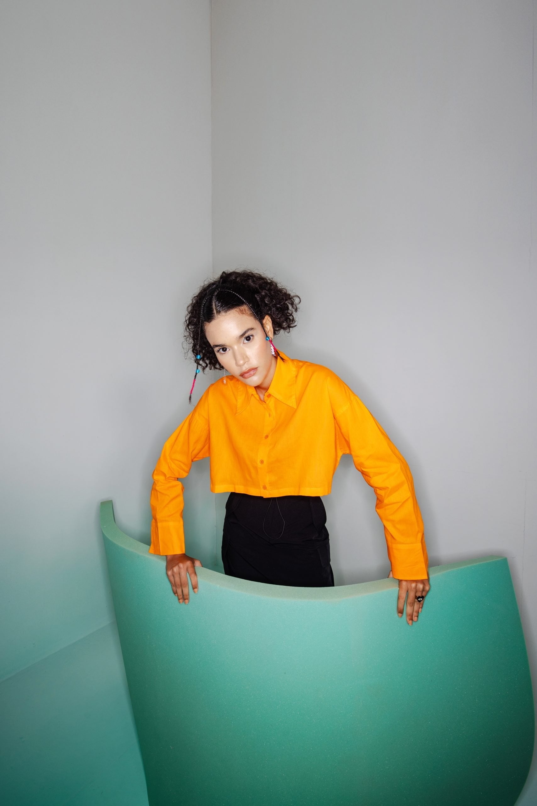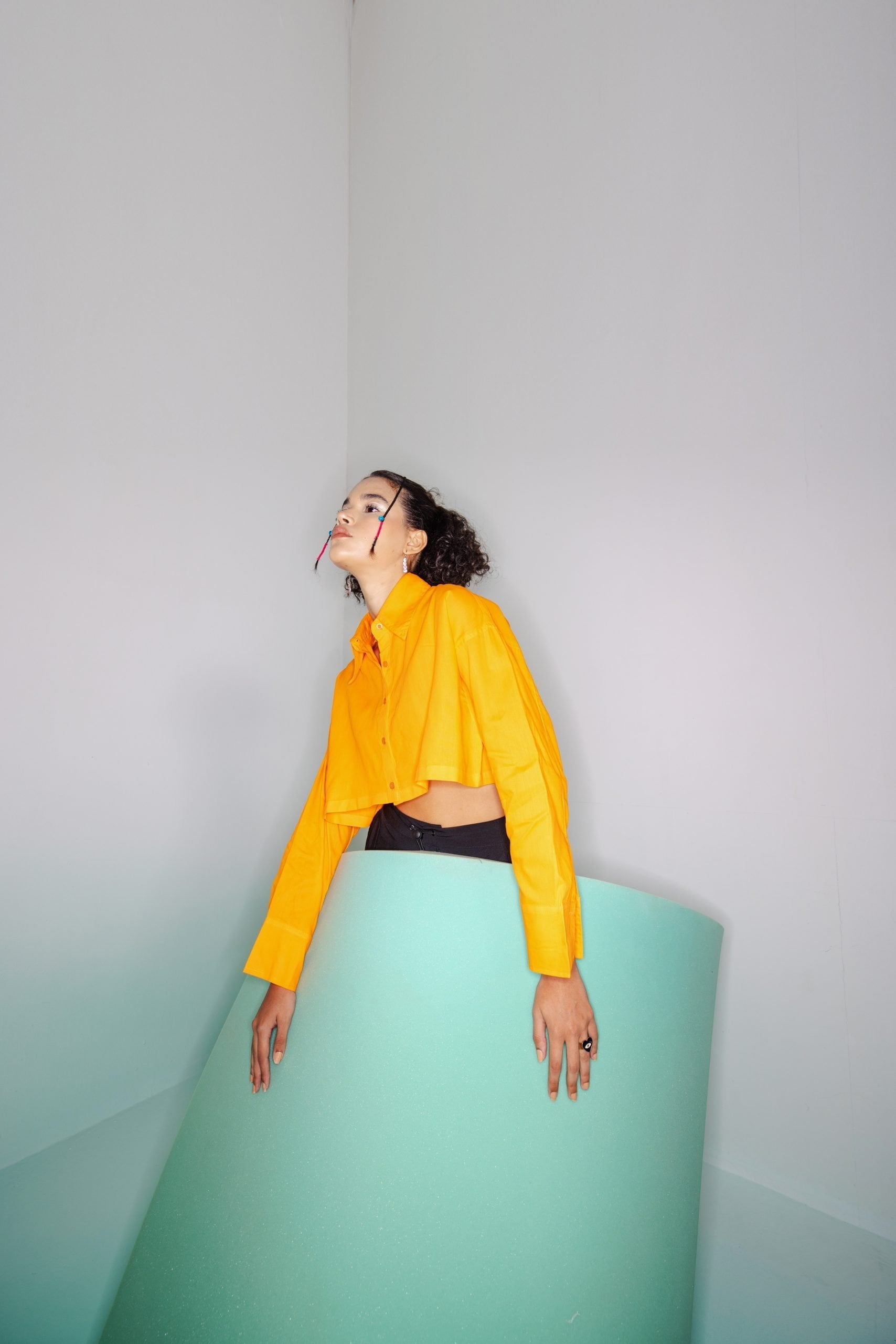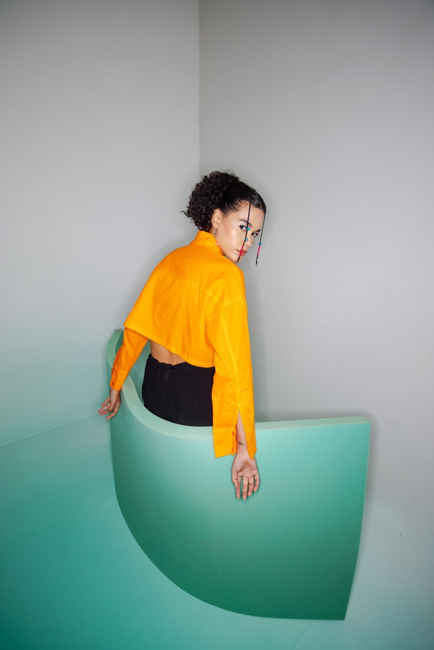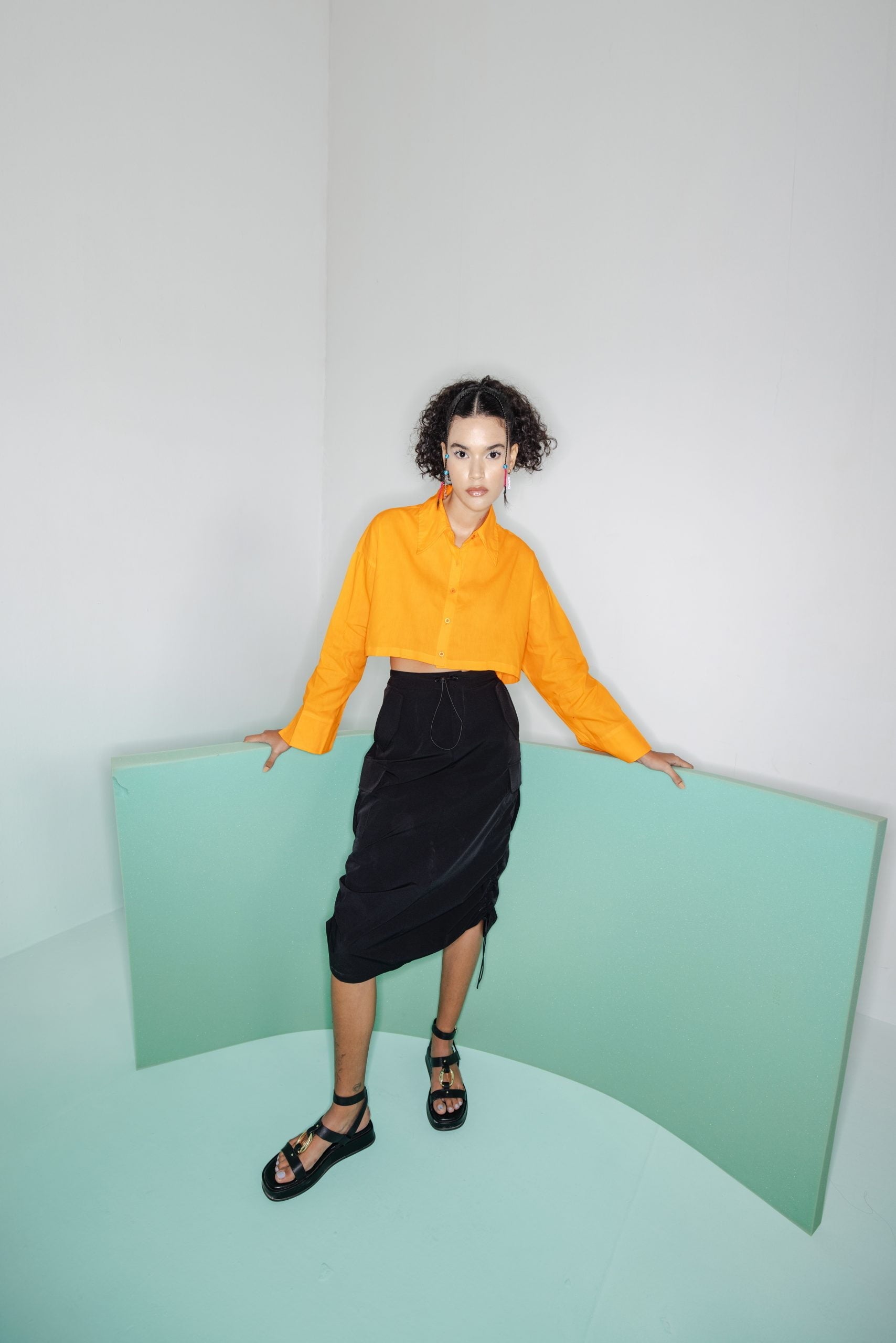 Bold and bright the Tangerine Tango Crop Shirt brings sunshine to your closet.